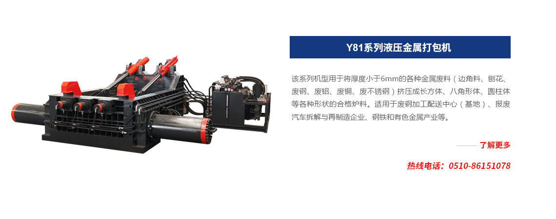 本公司是一個具有設計制造液壓機械多年歷史的專業生產企業,公司技術力量雄厚,專業生產Q43系列金屬剪切機、Y81系列液壓金屬打包機、Y82系列非金屬打包機、Y83系列金屬屑餅機、Q91系列重型液壓剪切機、廢鋼破碎線、撕碎機及其...